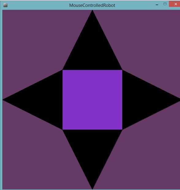 Este programa toma la posición del ratón en una dirección y lo envía como un comando para el Arduino. Esto fue hecha para el robot que he hecho, pero no he tenido oportunidad de probarlo. Cualquier duda sobre el código se puede pedir en los comentarios :)