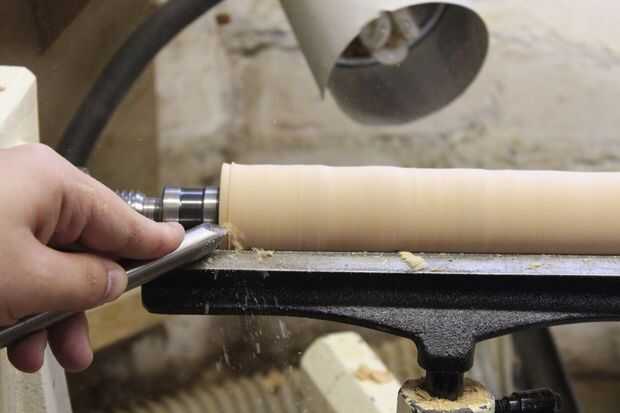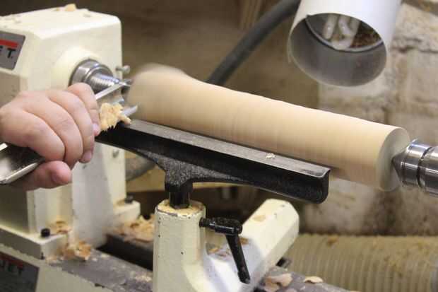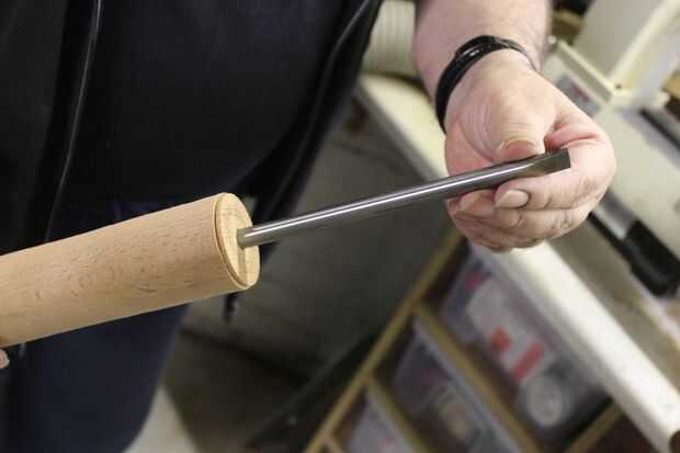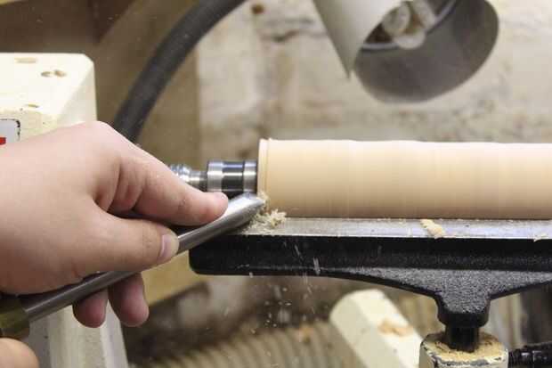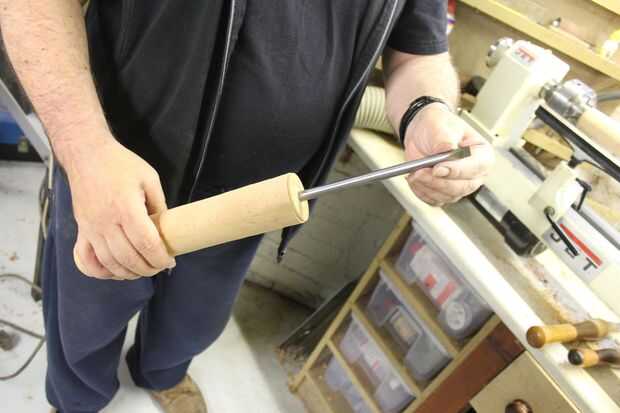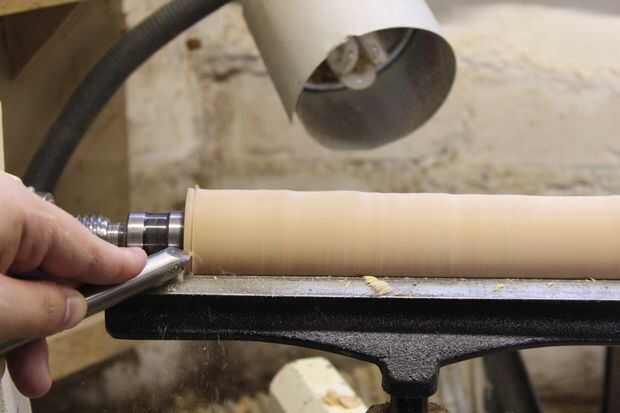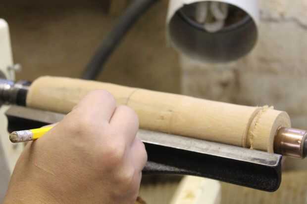 Corté los espacios en blanco antes de poner en el torno y convertirlos a redondo. Entonces corté un punto de sujeción en un extremo para poder mantener el espacio en blanco apretado y taladrar en el torno en el otro extremo.