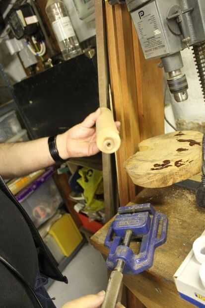 Convertir una herramienta de torneado de maderaPaso 1: Prepare la madera para el mangoPerfore un orificio de 1/2" mitad de camino hacia abajo el eje del mango para dar cabida a las acciones clave.Paso 2: Gire a la maderaConvertir la madera en la form