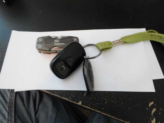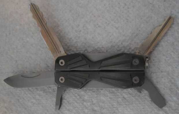 Así que usé 'Bear Grylls compacta herramienta multiusos porque Gerber generalmente hace cosas buenas y es barato mientras que un buen tamaño para mi proyecto, pero sobre todo porque lo tenía ahí. Si usted tiene más de dos llaves que desea agregar que le sugiero ir a una herramienta multiusos más grande.