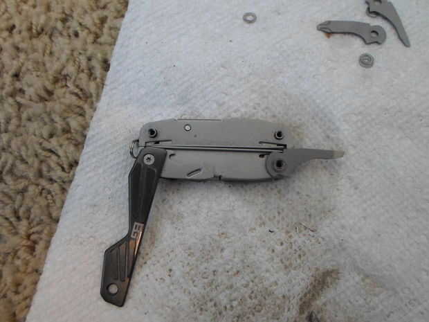 Retire con cuidado el tornillo por el lado opuesto que es el punto de pivote para la mierda que no quieres. En este caso llevó a cabo los conductores del tornillo como se puede ver en la segunda foto. Mantenga el otro tornillo, sólo suelta, para ayudar a sostener todo junto. Asegúrese de poner la lavadora en como estaban en la ubicación original de la herramienta.
