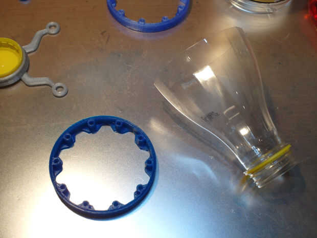 La tapa de la botella debe tener ~ 42 mm de diámetro para caber en el soporte sin pegamento presionando en.