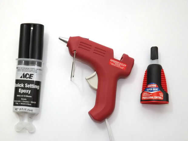 + pegamento estupendo, 5 minutosy caliente pegamento pistola w/pegamento palillos - sí, los tres. A veces basta con ir allí y perforar los agujeros para los tornillos está fuera de lugar.