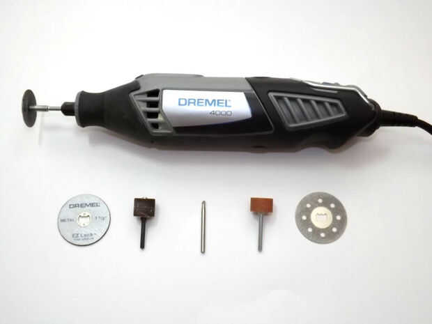 + herramienta rotatoria - estaría perdido sin esta herramienta. Utilizo un Dremel 4000. Cualquier marca le trabajo por supuesto, acaba de obtener uno con un montón de opciones de accesorios por lo que es más útil a largo plazo. Yo uso el disco de corte, para corte y rectificado. Un buen conjunto de accesorios, así como esta herramienta es muy útil. Brocas de carburo controlará el trabajo del metal más fino si lo necesita.
