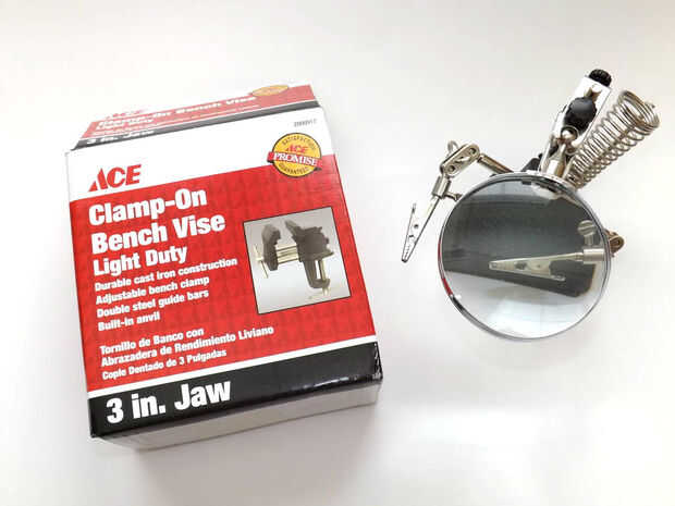 + ayudar a manos con lupa - la lupa no es la más útil, pero los cocodrilos son grandes para la celebración de piezas y los cables en su lugar para que pueda utilizar sus manos para soldar.