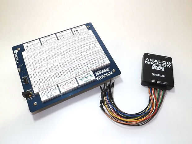 + generador de señal - para probar nuevos diseños. Muchos circuitos son inútiles si la frecuencia de la señal en es demasiado alto o bajo, así que úsalo para prueba/solución de problemas según sea necesario. Yo uso el Descubrimiento análogo de Digilent, que es un ámbito o fuente de alimentación y generador de forma de onda en una. Posee además un analizador de espectro y analizador/generador de señal digital de 16 bits. Es el mejor partido de su inversión que he podido encontrar. La Tarjeta explorador de electrónica tiene las mismas funciones y más, incluyendo más poder suministrar opciones.