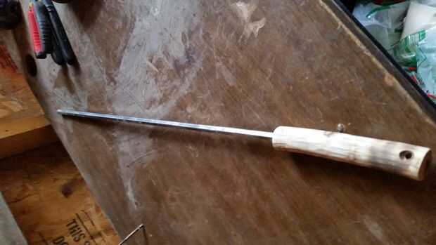 La primera es una varilla, algo que podría prod en el metal y garantizar se ha derretido pero no acercarse lo suficiente para quemar yo aunque tengo la intención de utilizar guantes de fuego en todo momento. Tuve un largo roto mezcla remo que era de acero y decidido fue lo suficientemente largo y haría una varilla de agitación decente. Era fácil de hacer y era gratis y rápido.