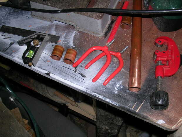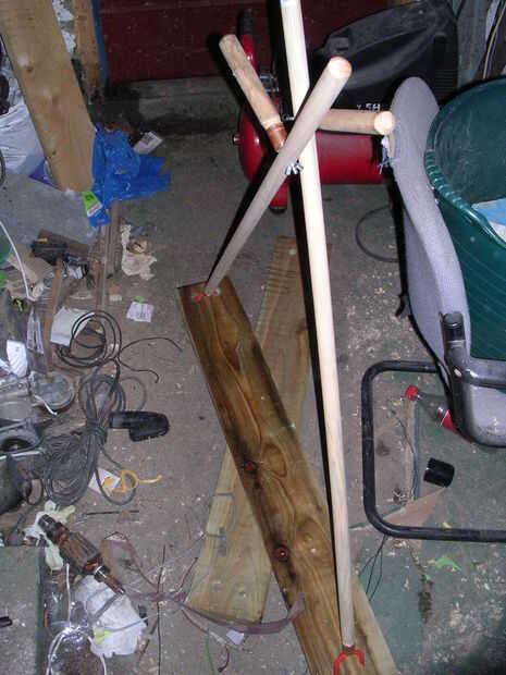 Hice algunas herramientas sencillas para ayudar a la tarea de aislamiento del desván. un par de puntas de postes para ayudar a empujar el aislamiento en los lugares difíciles en el espacio de techo que se verían obligado a arrastrarse en si no los tengo, también ayudan a reducir el contacto con los rollos de aislamiento y esto ayuda a reducir el cantidad o polvo que comienza a elevarse de los rollos cuando se manejan.