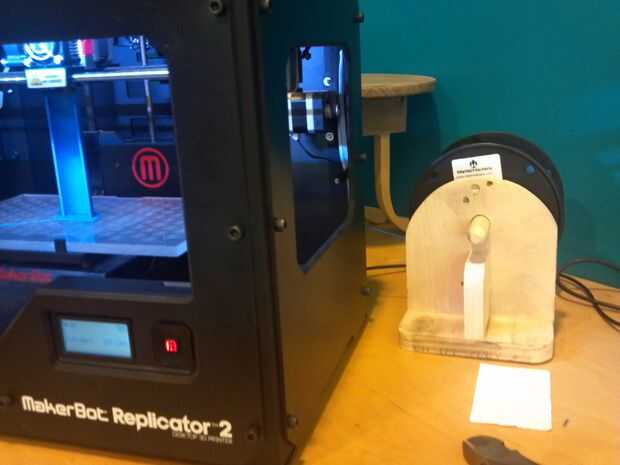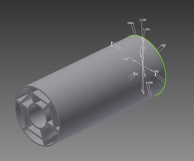 He añadido un adaptador de carrete de eje de 3/4 de pulgada a 2 pulgadas. Diseño en Autodesk Inventor e imprime en impresora 3D MakerBot.