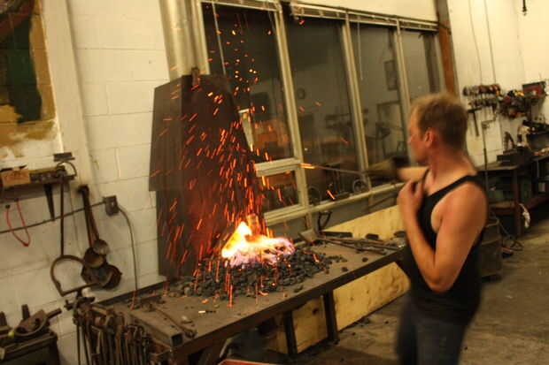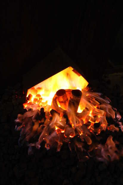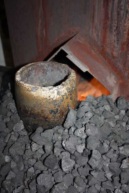 Imagen 3: El crisol finalmente ha alcanzado una temperatura suficientemente caliente para comenzar a poner trozos de tubo de cobre en. Como se derrite y charcos en la parte inferior del crisol es más fácil añadir más cobre; las novedades comienzan a fundir casi instantáneamente.