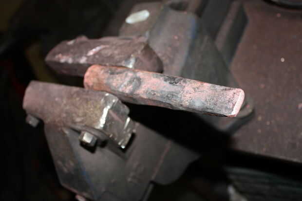 IMAGEN 5: Esto es lo que los cinceles como después de varias carreras a través de la fragua, martillo de energía y nos. Para la demostración que queremos subrayar el cobre mirar así que vamos a pincel de la superficie del alambre.