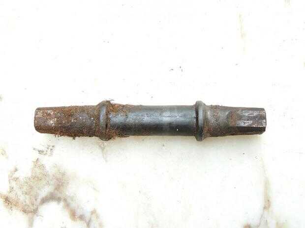 Este es otro ejemplo. Esto demuestra cómo se puede utilizar también un eje de manivela de bici bastante dura. Aquí me sthe cruda objeto encontró en el cobertizo.