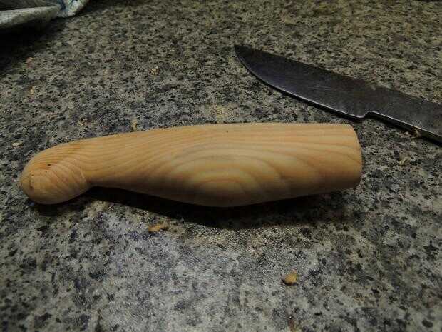 Aquí está otro mango después de fina-lijado final. Este es el tejo, que tiene un grano impresionante, aunque es más propensa a partir.