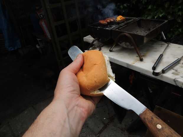 Este es el cuchillo menos complicado que se describe aquí, pero me encanta su elegante simplicidad. Tiene una punta redondeada para evitar lesiones y dar un apretón si es necesario. Hay un espacio de dedo pequeño en el extremo de la hoja afilada para permitir un control si es necesario. La hoja es deliberadamente amplia para que las rebanadas salgan bonito y liso e incluso. Esto también ayuda a transferencia de corte los alimentos de placa a placa.