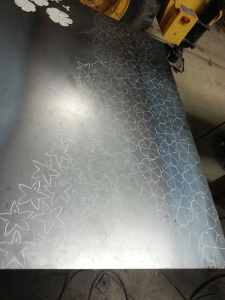 Este siguiente paso llevó algún tiempo pero lo hace todo vale la pena al final. Me llevó a la plantilla y traza usando piedra de jabón sobre la chapa. Como se puede ver, saqué muy pocas piezas pero para hacer una rosa allí debe ser solamente un total de 6 piezas para completar la rosa.