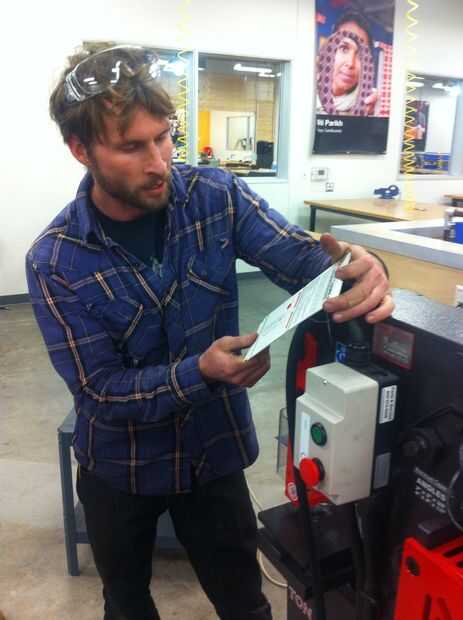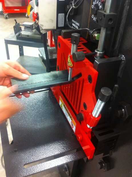 La primera parte de la clase fue sobre las partes fundamentales de la máquina. Es importante saber que las posiciones de metalistería en la máquina actúan al mismo tiempo. Al activar el control, todas las estaciones funcionan a la vez. Siempre ser consciente de otras personas que están alrededor de la máquina, para que alguien no se una parte del cuerpo dañada. En la imagen, he marcado los bits importantes, como nos instruidos. Mira las fotos individuales para obtener detalles sobre cada estación de trabajo.