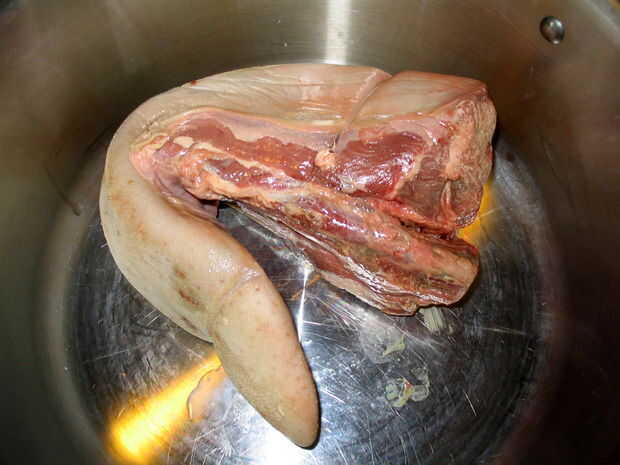 Esta semana finalmente mordió la bala y comprar una lengua de vaca de 2,5 lb. Después de una lectura a través de los años 70 y los 90 ediciones de la alegría de cocinar y algunas investigaciones de la web, cada receta me instruyó a hervir la lengua por varias horas antes o servirlo directamente o en una salsa de sabor fuertemente. Esto parecía un retroceso a la generación de mi abuela, pero por falta de otro plan que decidí probar mi primer go. Así, este Instructable fue preparado según la receta de la alegría para hervir la lengua de carne fresca.