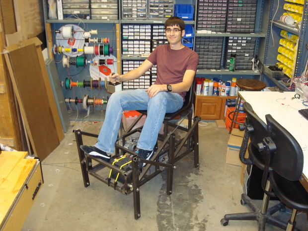 Por lo general, la mayoría de los proyectos de robótica que he hecho han sido en la pequeña escala, no exceda de un pie en su mayor dimensión. Con la reciente donación de un sillón de ruedas eléctrico para el Club de robótica CMU, estaba intrigado por la idea de utilizar los motores de la silla de ruedas en algún tipo de proyecto. Cuando planteó la idea de hacer un a gran escala algo con Mark Gross, el profesor de CMU que enseña a hacer cosas interactivas, los ojos encendidos como un niño en la mañana de Navidad. Su respuesta fue "¡ adelante!"