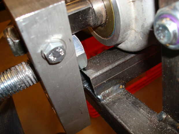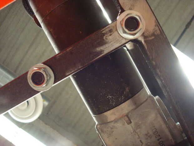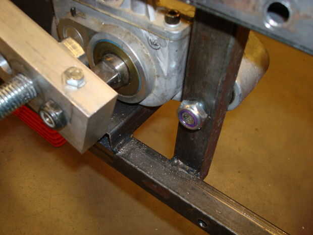 El problema de espacio de cabeza de perno inmediato puede ser aliviado mediante la adición de una pequeña canalización vertical bajo el cañón del motor sobre el travesaño. Puesto que el motor pueda girar sobre el perno de montaje principal, elevar el cañón del motor provoca el eje, para que podamos conseguir la separación necesaria. Corte un pequeño trozo de madera o metal que se levanta el motor lo suficiente como para proporcionar espacio. Luego, añadir el perno en u y asegure con tuercas de seguridad. También asegurar la tuerca en el perno de montaje principal.