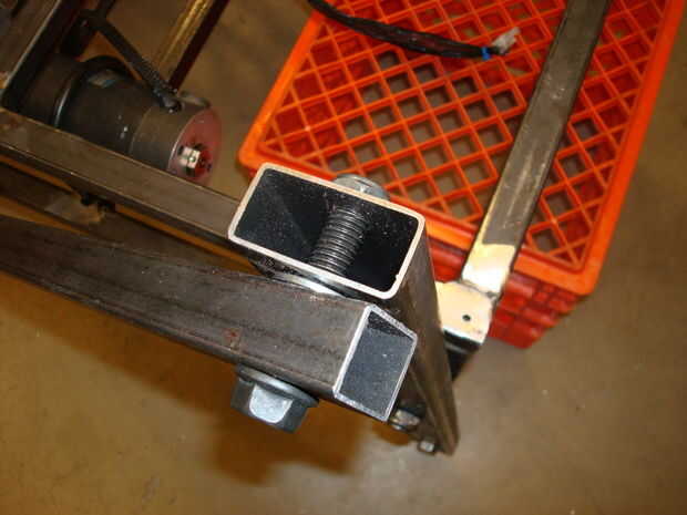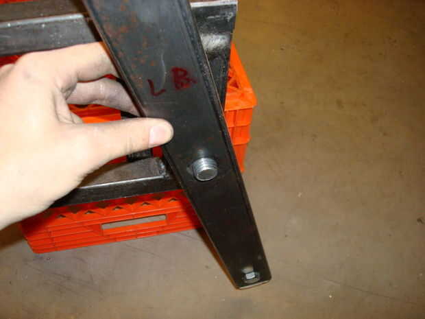 Agregar el acoplamiento primera puesta en el perno de coche. Entonces, a utilizar una 2 1/2" 12-13 Perno, conecte el otro extremo del enlace a la parte superior de la pierna, colocar una arandela entre las dos. Añadir una tuerca de bloqueo de nylon, pero no la apriete.