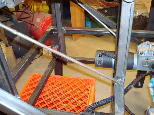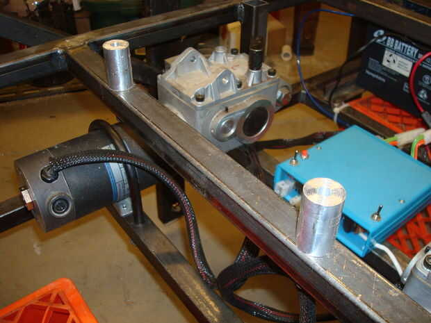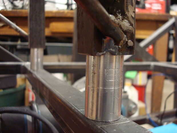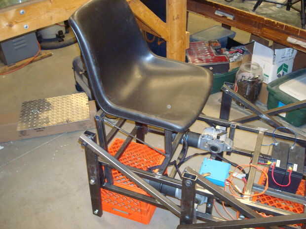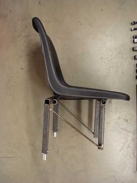 Yo quería hacer mi silla fácilmente extraíble por lo que el robot sería más utilizable si quería usarlo para transportar objetos grandes. Para lograr esto, creé el sistema de montaje mediante cilindros de aluminio que encajan perfectamente en el tubo cuadrado 1 "x 1" acero. Dos clavijas están montadas en el bastidor y dos a la silla. Inserte en las secciones correspondientes en la silla y el marco. Toma un poco de maniobras para subir y bajar, pero se monta firmemente, que es importante ya que el movimiento del robot es algo rugosa.