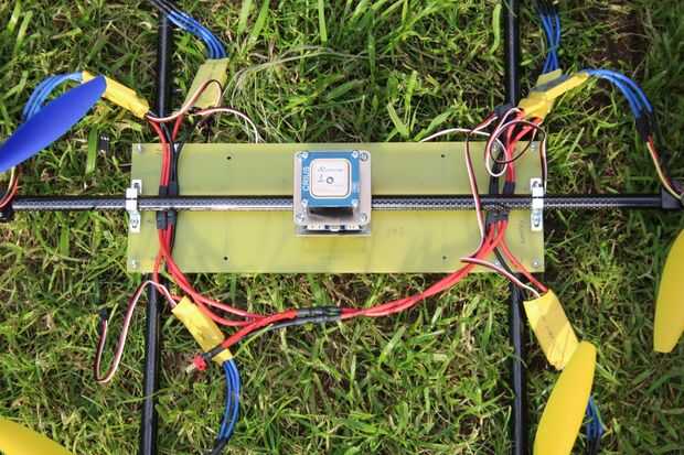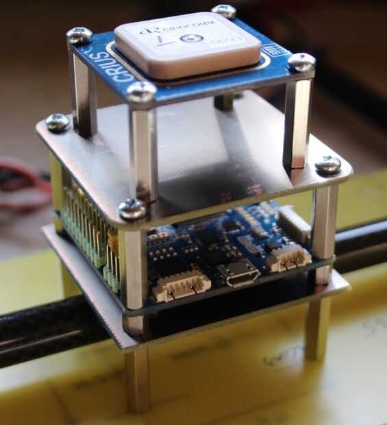 A continuación el vuelo control tablero y GPS si ajuste uno. Me gusta usar stand-off para ajustar estos elementos y también utilizo revestido por debajo y por encima de la Junta de control de vuelo de cobre para proteger la Junta contra los cables del motor. (Más en eso más adelante). Revisa la fotografía para ver qué bits solía montar el tablero de control de vuelo y el GPS.