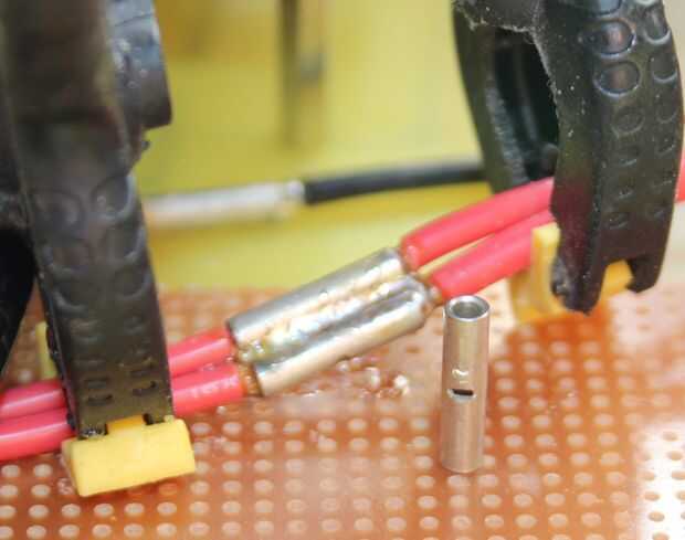 Entonces cableado todos los cables de potencia a cada salida. Elegir conectar las 3 ESC en cada extremo entonces ejecuta un cable a la mitad y luego en el conector de la batería principal. El ESC se conectan utilizando 16AWG, entonces utilicé alambre 14 AWG para conectar los 3 en cada extremo y 12AWG para la batería. Uso no aislado en la línea de pliegue y Suelde todas las conexiones juntas entonces calor encogen sobre las articulaciones. Lo que quería evitar era poner un tablero de distribución de energía debajo de la media, así haciendo las conexiones en cada extremo entonces correr el cable por el borde que debo tengo una brújula feliz en el FC. Ah y por cierto que no cualquier cable 14 AWG negro tan tuvieron que usar rojo para ambos núcleos.
