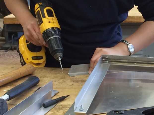 Para clavar a los miembros juntos, primero deberá perforar agujeros en el aluminio. Determinar qué tamaño remaches usted va a usar y elegir un poco de acuerdo. Asegúrese de que sus taladros y brocas son adecuadas para perforar aluminio. Perforaciones en cada conexión de pin, que significa los extremos y a veces medios segmentos de los miembros verticales. Establecer un estándar, por ejemplo 1/2 del borde. La precisión en este paso es esencial para tener un producto final bien fit. Tienes que tener remaches varios a lo largo del perímetro de sus pasos, pues fijó un estándar para esto también y emparejar estos agujeros con los miembros de la viga horizontal que estará apoyando el paso.
