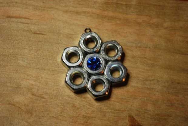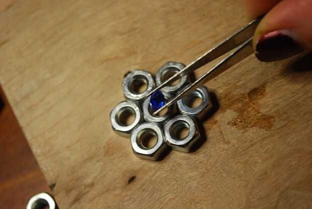 Pegamento anillos con una tuerca hexagonal de centro, añadir el cristal y los adornos son todo!