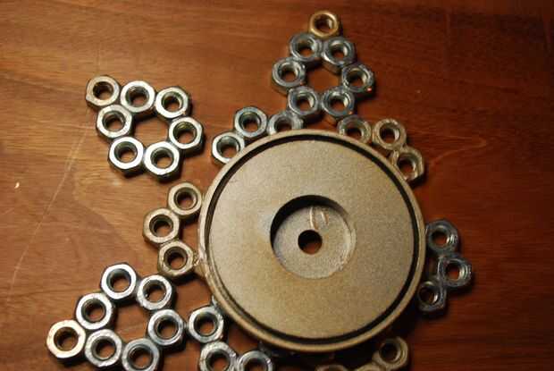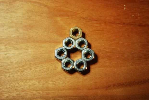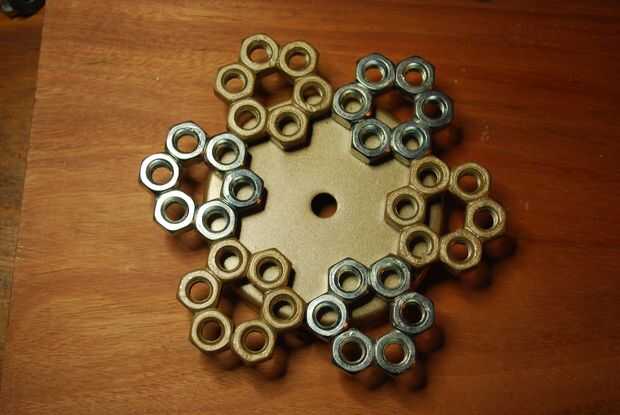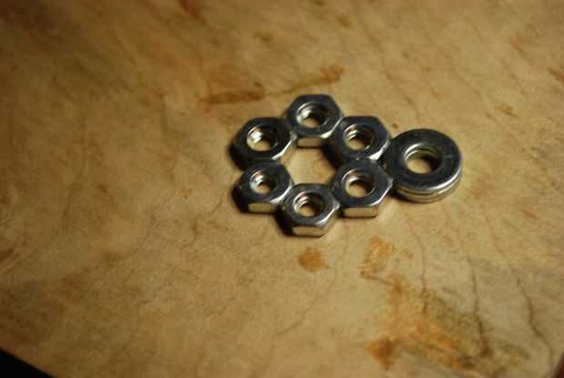 4. pegamento de tuercas hexagonales de 3/4" entre los brazos.