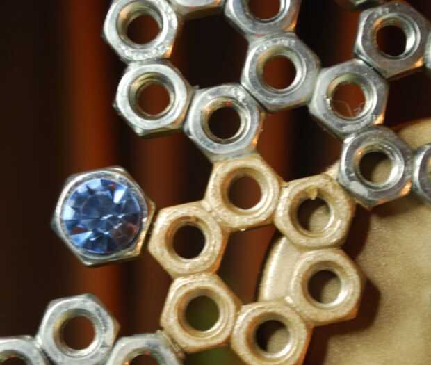 - 1/4" hexagonal de anillos (12) y pegar una tuerca hexagonal de oro en cada uno
