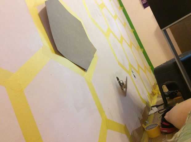 Ahora que se graba el segundo hexágono en alineándolos se convierte en fácil. Así que se alinean los hexágonos y cinta toda la pared esta manera. Tenga cuidado cuando haces todos los bordes de la pared, para que el proyecto va a salir buscar mejor.