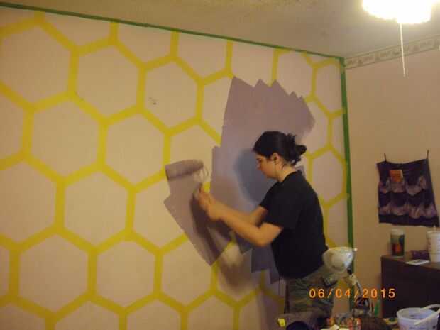 Colocar la lona que puede pintar la pared con menos lío. Revolver la pintura, incluso si no piensas que necesitas para, hacer de todos modos luego pintar la pared. Pinto suavemente la primera capa para que no ruede la cinta hacia atrás.
