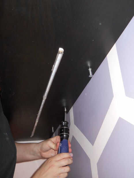Para el otro estante tomé el nuevo spot, utiliza el nivel para trazar una línea que sería, makng seguro que la línea de nivel. Usé el detector de montantes para encontrar a los pernos prisioneros, perforados en la pared para asegurarse de cuando atornillado en la pared para asegurarse de que el estante se montarían en los pernos prisioneros. Yo entonces alinearon el soporte en la pared para que el estante se tope contra la otra pared.