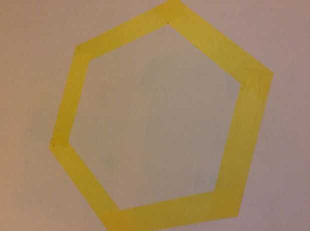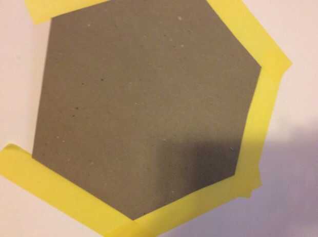 Antes de que tape toda la pared con el hexágono le debe realmente una cinta hasta la pared Retire la plantilla, paso atrás y asegúrese de que el hexágono se ve en la pared.