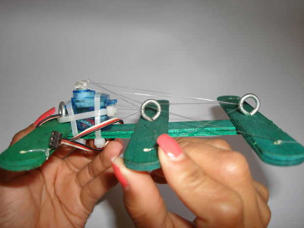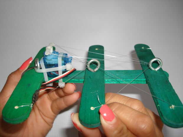 Siga los diagramas a continuación para conectar el hilo de pescar un servo de y de las piernas.