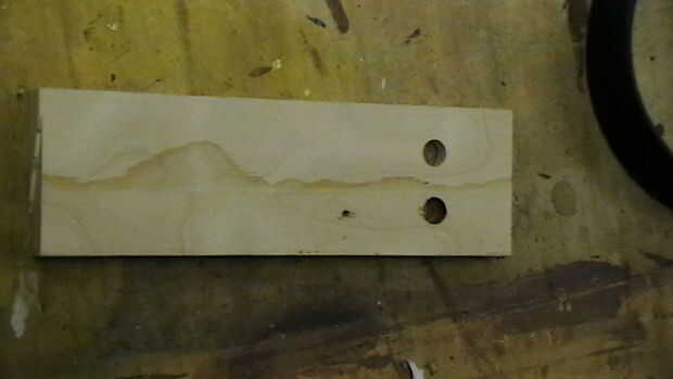 Estos no tienen que ser increíblemente precisa, así que solo corte algo de madera que parecía adecuado, y dos 1/2 orificios espacian 1" centro a centro y 1" de la parte superior.