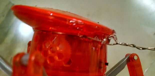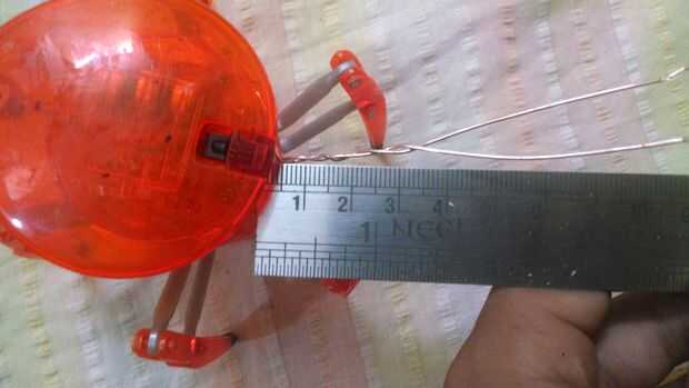 Tome el cable y enróllelo por debajo de la cabeza de la HexBug araña, con la ayuda de un giro plaier la articulación donde hasta satisfacer 3•5 cm del cable, entonces usando la pistola de hotglue pegue el cable al lugar deseado.