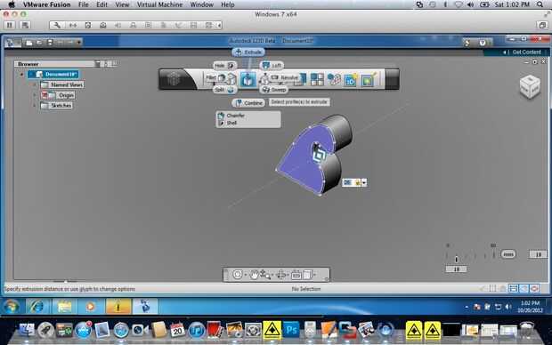 En la casilla de "crear" (3ro herramienta de la izquierda) elige "extraer".  Tipo en profundidad--utilizó 26.  Seleccione "Únete" en la cajita a la derecha del espíritu.  Luego ir a la casilla de "crear" anterior y haga clic en extraer.