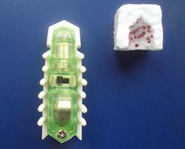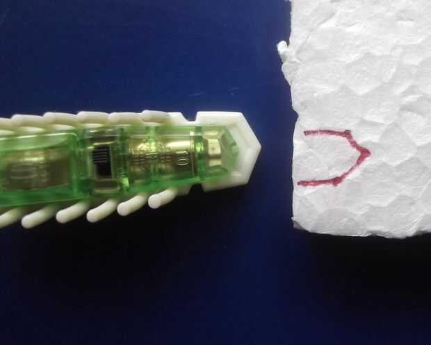 Con 2 bits de thermocol, vamos a llenar la cola y extender los extremos de la cabeza de la hexbug.