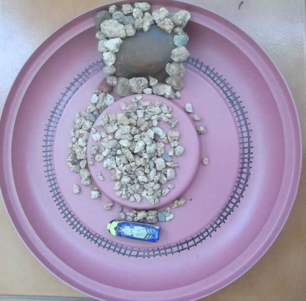 Se puede hacer un túnel con plastilina sobre el carril en el que se puede presionar grava.