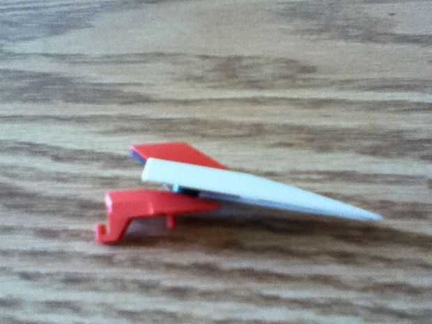 En algún momento durante la transformación, probablemente eliminado el pequeño pedazo de trasero rojo o tenía caer. Si no, hazlo ahora. Tiene una ranura en la parte superior que se adapta a peg del escudo PEG en el escudo antes de volver a colocar esta pieza. Entonces reemplazar el rojo pedazo y escudo con el gancho para fijar en la ranura trasera de la Clanche. Nota: el escudo/pieza montaje es bastante flojo y puede desarmarse como montar y probar. El montaje en el cuerpo principal también es flojo; por esta razón recomiendo montaje el escudo en la pieza posterior cuando se extrae.