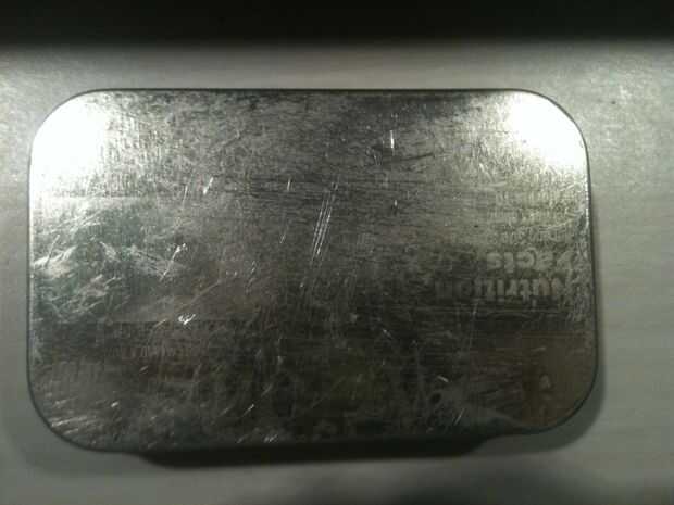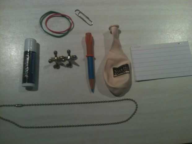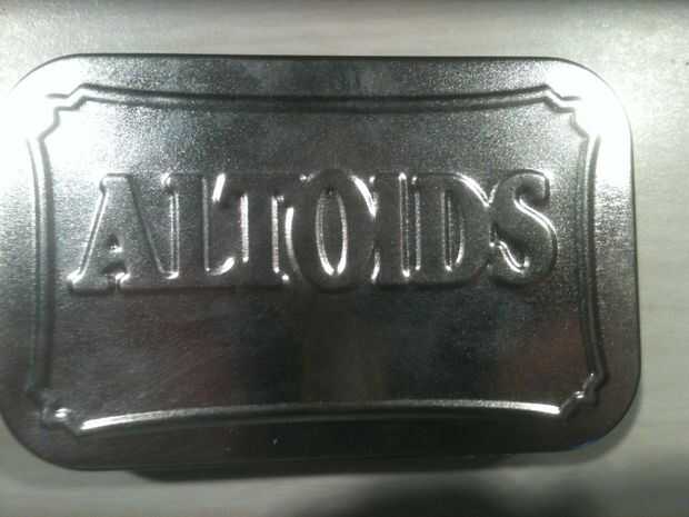 Altoids una lata, dos gatos, un collar de cadena, un clip, dos bandas de goma, un lápiz pequeño, Chapstick, un globo y un bloc de notas, hice mía. Estas cosas son opcionales, puedes poner lo que quieras en él. Y mi lata Altoids es plata porque puse actitone en él para hacerlo brillante!