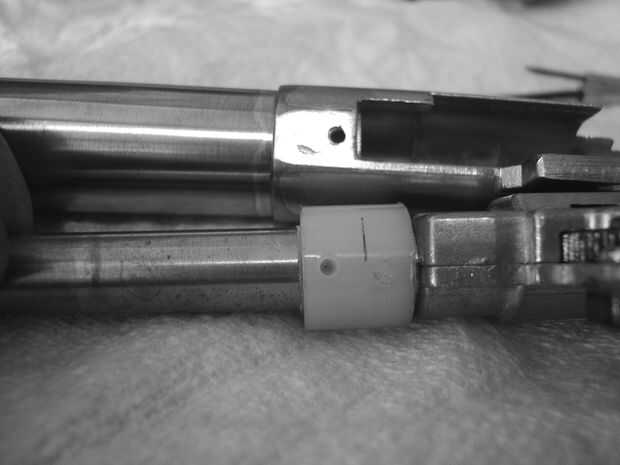 Cuando encuentre la posición que usted está satisfecho con insertar el barril interno en el cilindro exterior y terminar el taladrado para el espaciador de modo que Alinee correctamente.