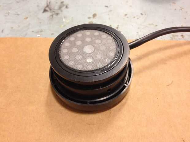 5) para realmente perforar los orificios, la punta del destornillador se alinean con el orificio usando una fuente de luz brillante en el otro lado y gire suavemente el destornillador en el agujero. Esto perforar a través de la fina tela negra que cubre el agujero y dejar los bordes limpios. Asegúrese de que utilizar pinzas para luego recoger a toda la tela suelta por lo que no terminan en el espacio detrás del diafragma driver.