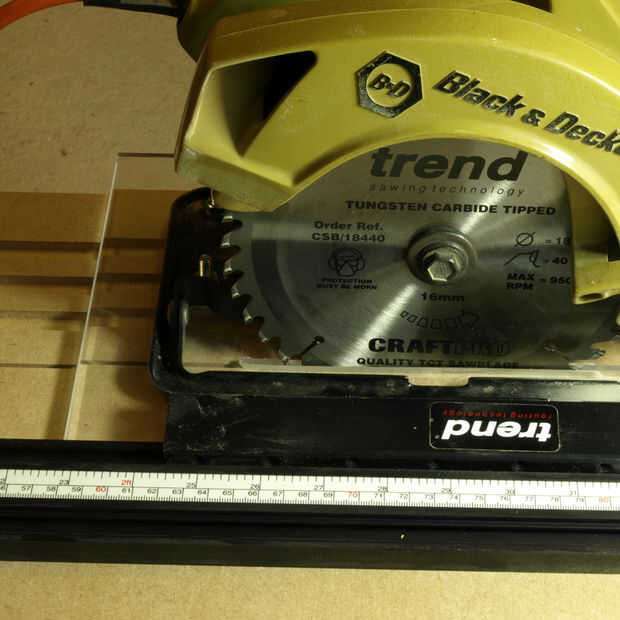 Utilice una sierra circular, con una cerca o contra un carril de guía, cortar la longitud preparada del zócalo a la altura necesaria.