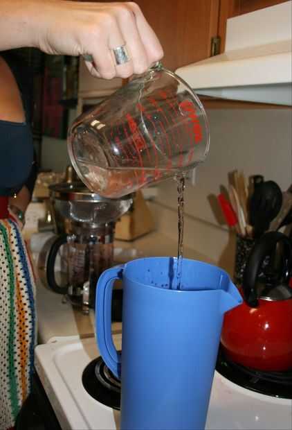 Este paso es simple y ' All, mientras revuelve, vierte 4 onzas de agua fría a la jarra.