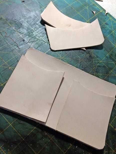 Para empezar la cartera, usted querrá cortar todas las piezas de cuero. Para ello, humedezca el cuero con agua limpia y traza el diseño con un lápiz o cualquier cosa que una luz pero huella visible (pero no una marca).