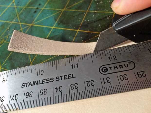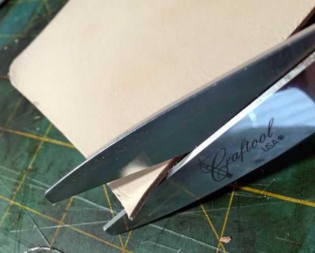 Después de trazar el patrón en la piel, cortar las piezas con un cuchillo de utilidad/caja o tijeras de cuero. Si usted está haciendo algunos trabajos de cuero bastante regular, recogiendo un par de tijeras de cuero se facilitará su vida infinantely.