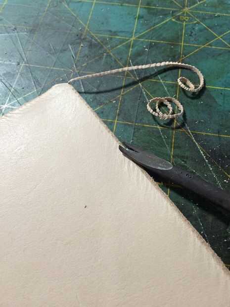 Cuero más fino puede ser un poco más difícil a bisel, por lo que recomiendo practicar en algunos de los restos que queda de cortar su piel. Usted puede experimentar al beveler parece hacer pequeños saltos a lo largo del borde. No te asustes, esto probablemente se Polaco hacia fuera cuando pulido.
